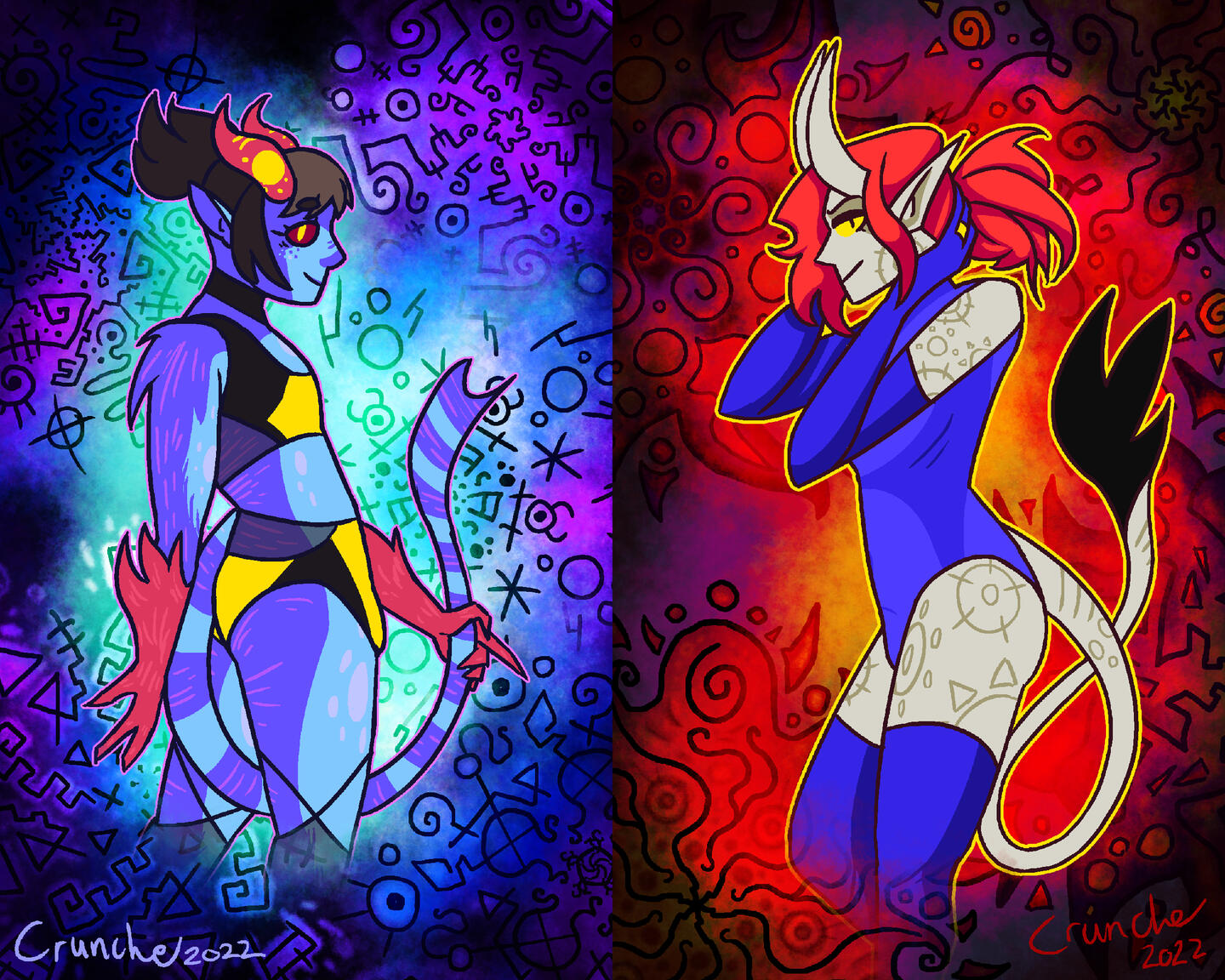 My favorite things to make range from small / dumb / adorable to monstrous / edgy / flamboyant. I love drawing absolutely heinous creatures, and also just putting cute characters in cute outfits.