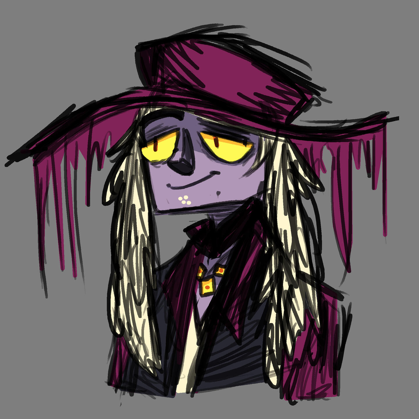 Sketched drawing of the character from the bust up, with flat colors underneathFull Shade / Render - $75