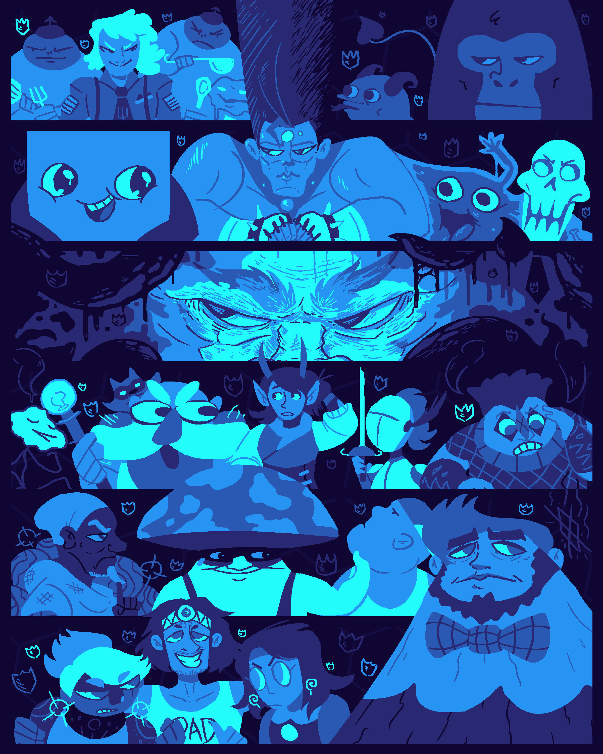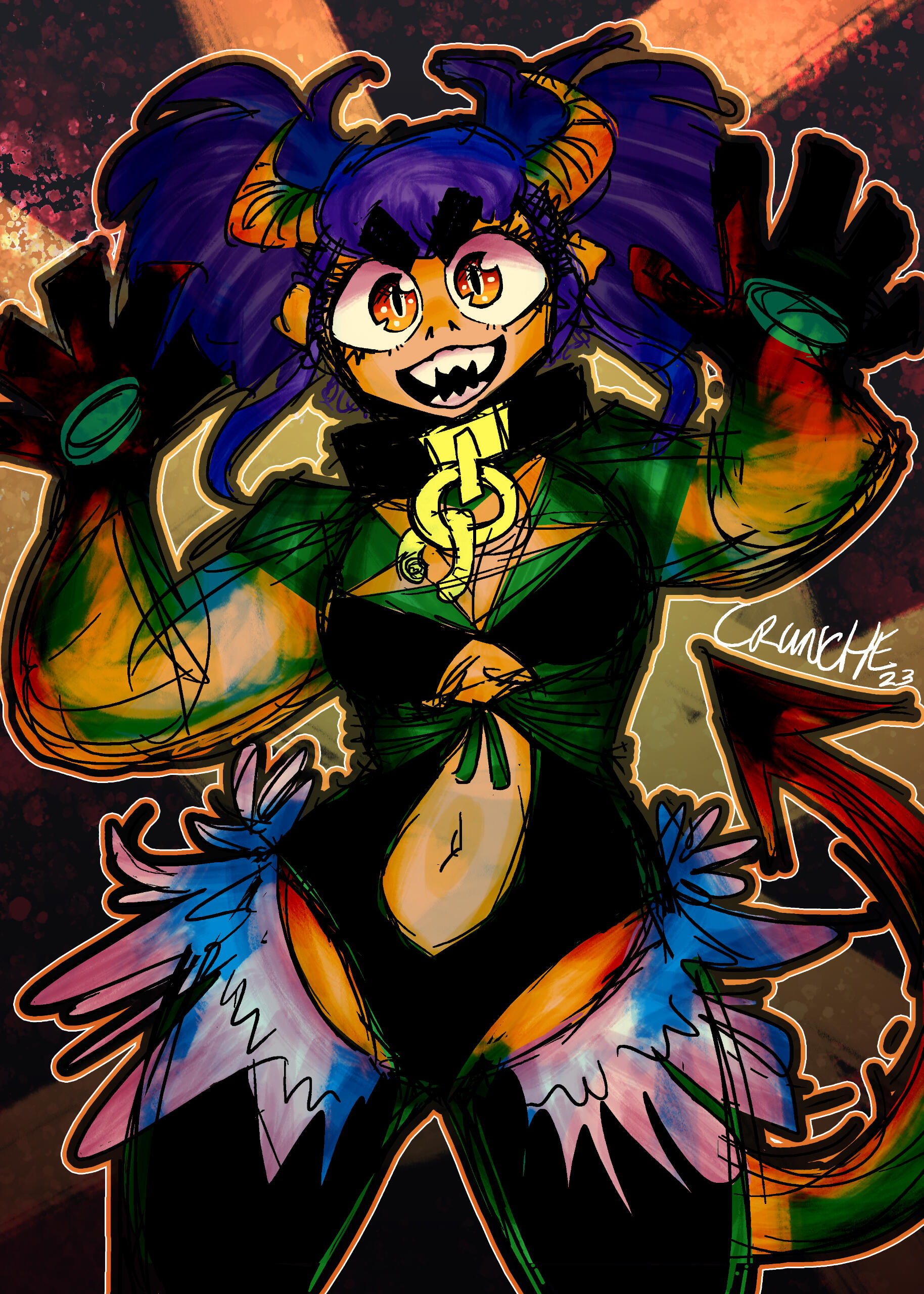 My favorite things to make range from small / dumb / adorable to monstrous / edgy / flamboyant. I love drawing absolutely heinous creatures, and also just putting cute characters in cute outfits.