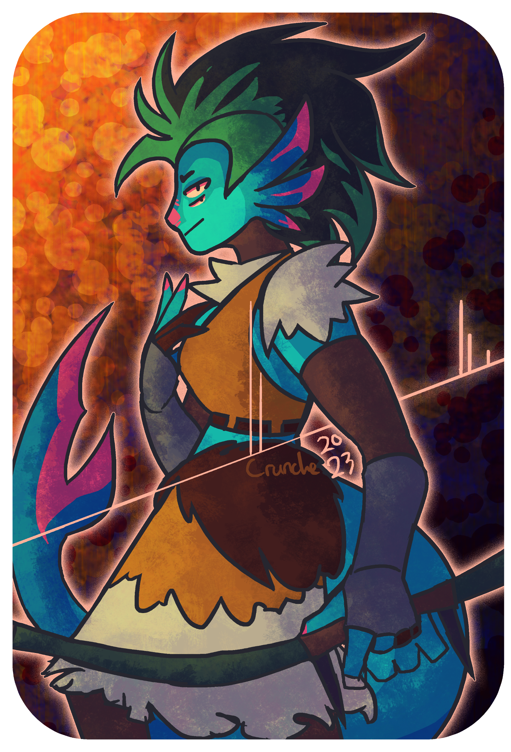 Sketched drawing of the character from the bust up, with flat colors underneathFull Shade / Render - $75