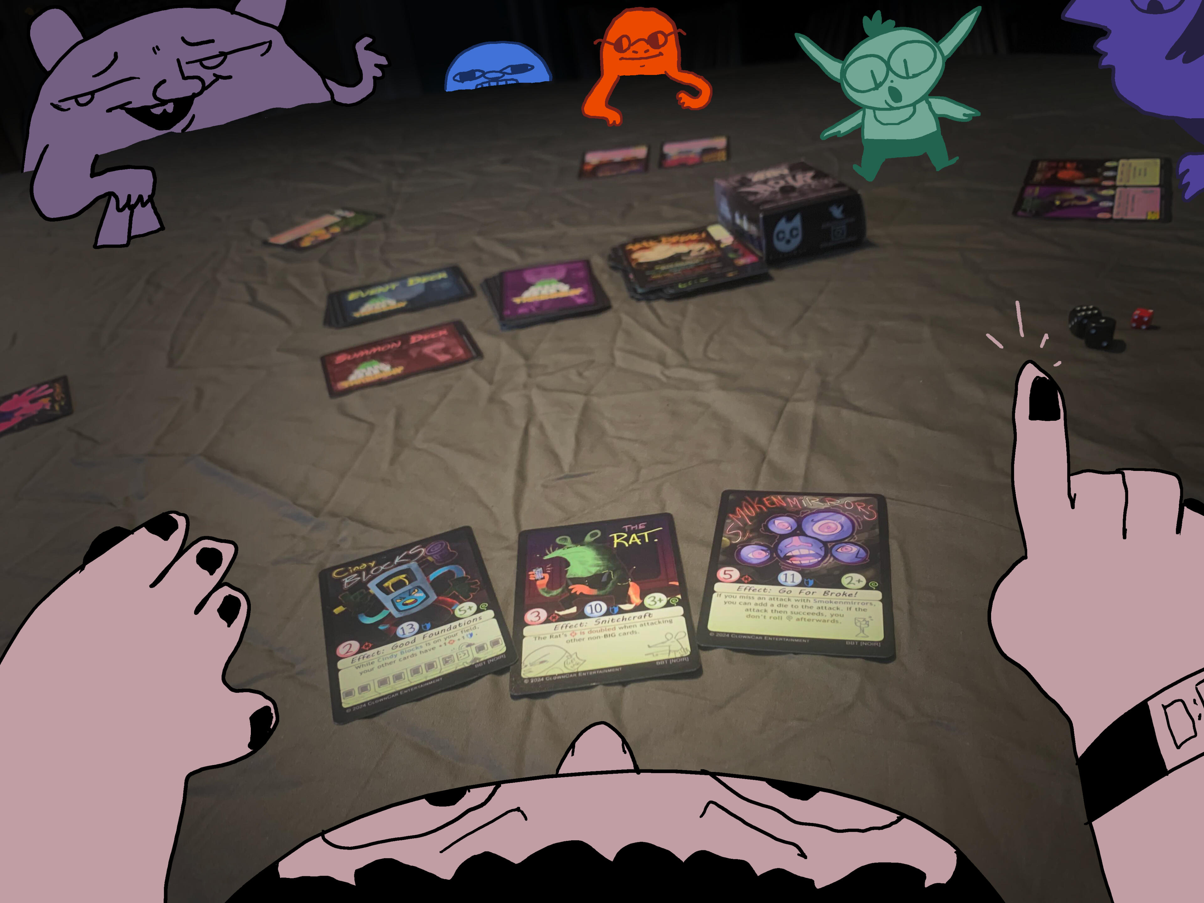 I have a decent amount of experience in both card game and video game design, though the latter has mostly been designing assets. I'm the creative lead on Big Boy Throwdown, a physical card game (more on that here).